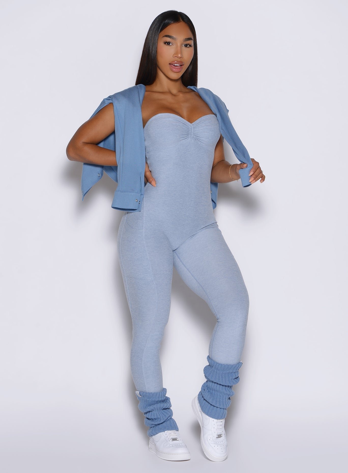 The Flawless Form Bodysuit in Niagara Mist is designed to flatter and perform. This one piece full bodysuit features adjustable front scrunch detail and customizable bust coverage for a personalized fit. The open back and hideable front ties let you switch up the look, while straps can be styled five different ways. With a scrunch butt, side pockets, and cropped length, it combines function with form. Removable bra pads and supportive four-way stretch fabric provide comfort and versatility, and the no-front-seam design keeps it sleek. This baby blue bodysuit delivers confidence, support, and standout style from gym sessions to all-day wear.